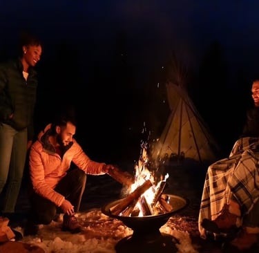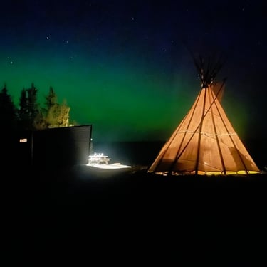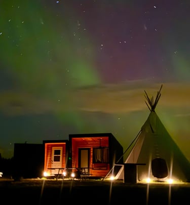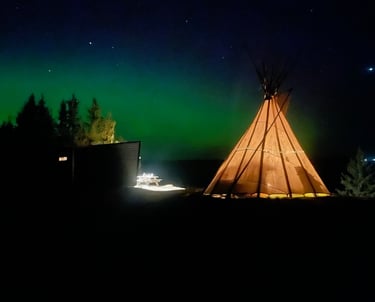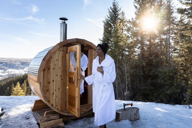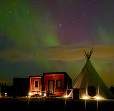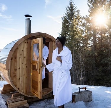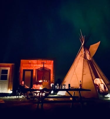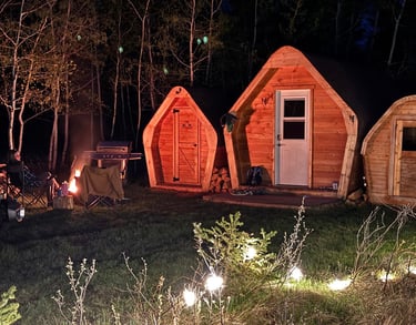 Experience breathtaking views and luxury in our majestic EAGLES NEST Cabin. 6 guest fit nicely into this area with wood fired glass front Sauna for 8 and Cowboy Hottub over looking miles of stunning river valley. Inclusive food and beverages delivered directly to your cabin for a seamless and peaceful experience!